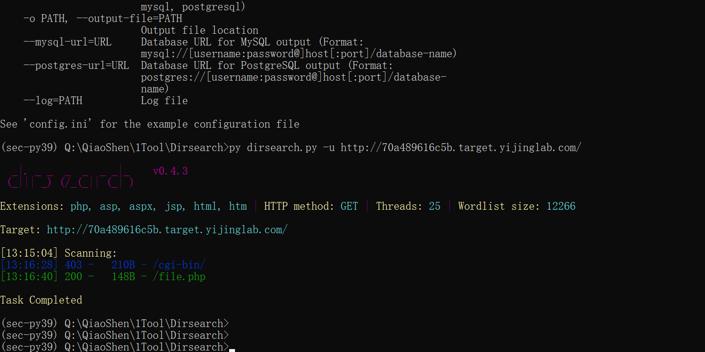 推荐在 kali 中使用 apt 下来的 dirsearch,Windows 的就是依托。