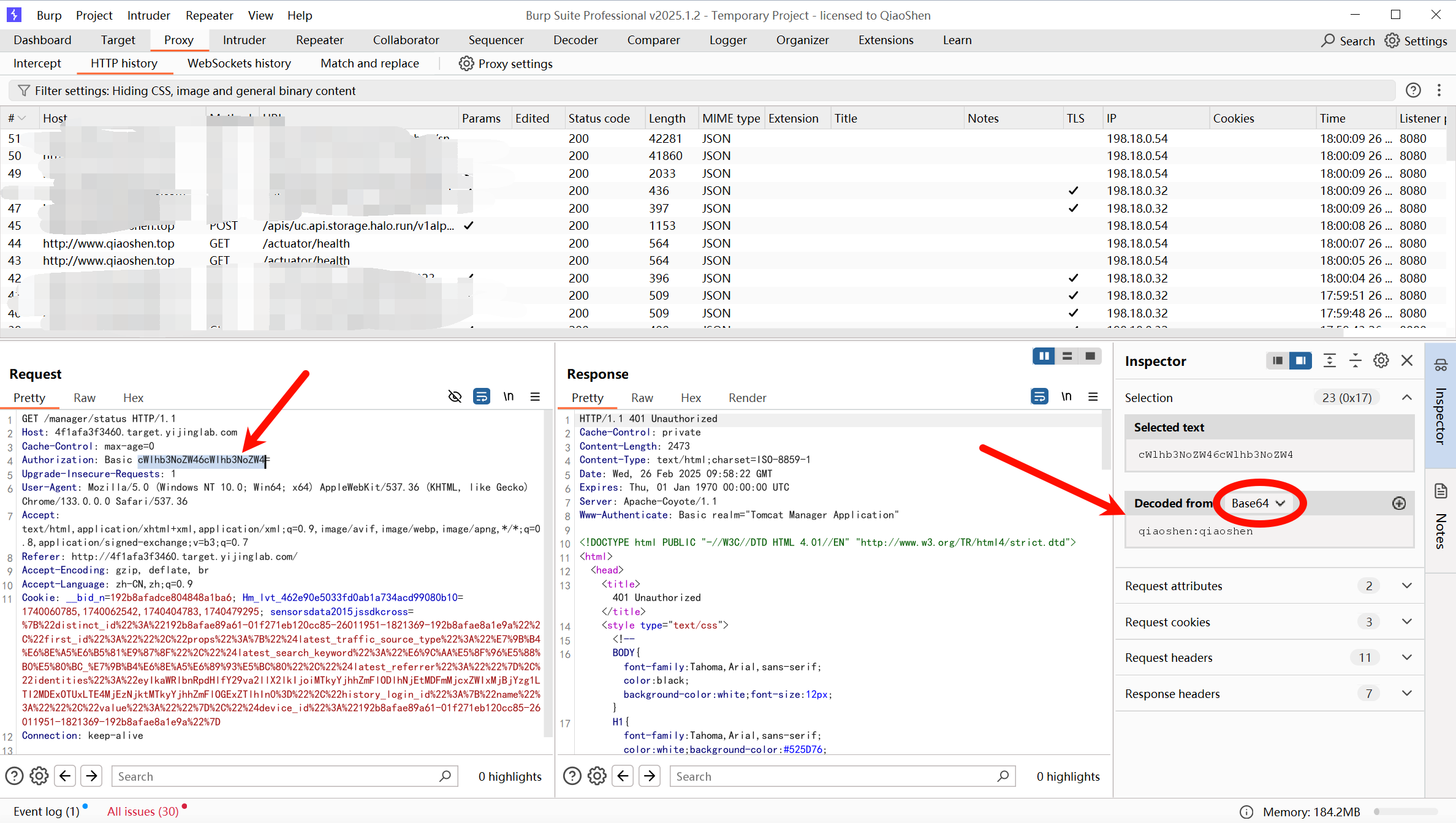 Base64_encode(username:password)通过新版本 Burpsuite 我们也可以清晰的看到给出了提示,认证过程的 明文信息 和 编码方式。